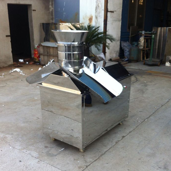 本机多用于制药、食品、冲剂、化工、固体饮料等行业,将搅拌好的物料制成所需颗粒,亦可粉碎废片和干块并碾挤成颗粒。特别适用对粘性较高的物料。本机凡与物料接触部分均采用不锈钢制作,外形美观、结构合理、制粒成型效率高,颗粒美观、自动出料,避免人工出粒造成颗粒破损,并适合流水工作。通过机械转动使碾刀和压料叶做相反旋转,压料叶成一定角度使物料向下压入碾刀,碾刀上的大角螺旋叶讲物料推向筛子筒壁,在通过刀片将物料从筛选孔挤出而成颗粒。