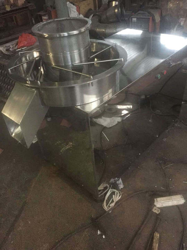 本机多用于制药、食品、冲剂、化工、固体饮料等行业,将搅拌好的物料制成所需颗粒,亦可粉碎废片和干块并碾挤成颗粒。特别适用对粘性较高的物料。本机凡与物料接触部分均采用不锈钢制作,外形美观、结构合理、制粒成型效率高,颗粒美观、自动出料,避免人工出粒造成颗粒破损,并适合流水工作。通过机械转动使碾刀和压料叶做相反旋转,压料叶成一定角度使物料向下压入碾刀,碾刀上的大角螺旋叶讲物料推向筛子筒壁,在通过刀片将物料从筛选孔挤出而成颗粒。